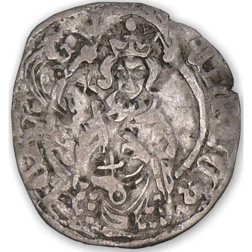 | 表面の説明 | Crowned king facing, holding sword cutting legend. |