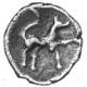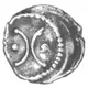 | Описание аверса | Two thin crescents back-to-back. Pellet in each cusp. |