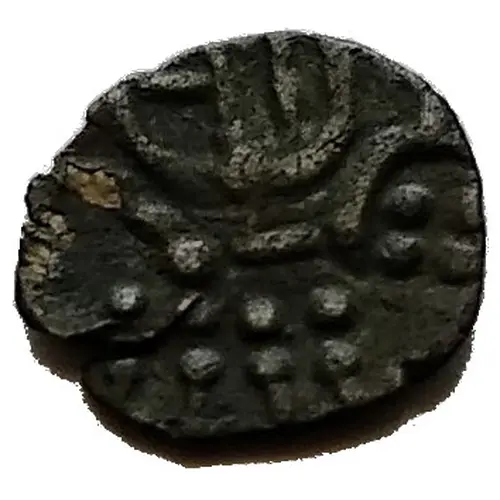 | Descrição do reverso | Kannada numeral 2 1/2; above Grantha letter B (Ballala)?, all enclosed in an ornamental enclosure |