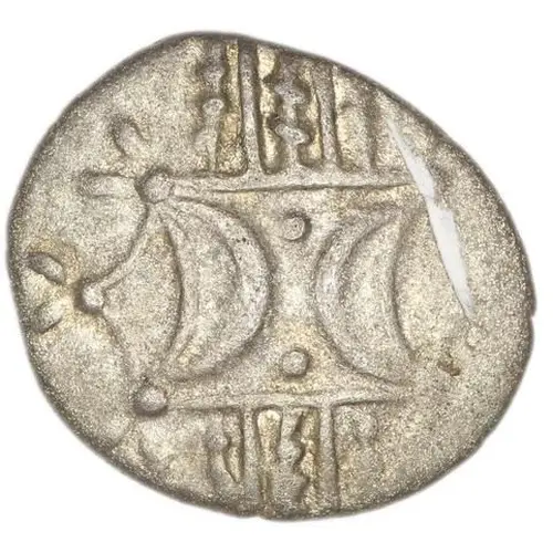 | Obverse description | Double back-to-back outline crescent emblem on vertical wreath. Two pellets between crescents. Crescents between two parallel lines. Lines and rows of pellets extend perpendicularly from the two parallel lines. |
