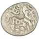 | Reverse description | Horse right, large oval head with pellet for eye, corn ear mane. Reversed S below head. Two pellets below tail. Pelletal sun (daisy with ring around it) above. Pellet triad and monogram below. |