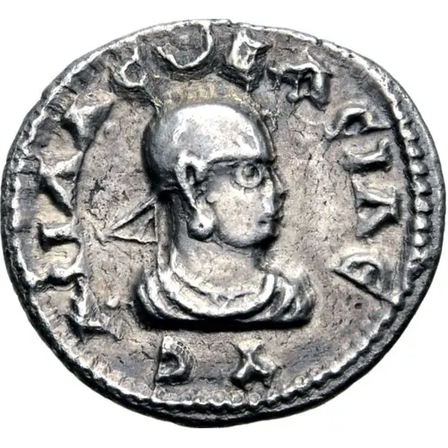 | Reverse description | Bust of Aphilas to right, wearing headcloth ornamented on front and ending with triangular ribbon behind; above, pellet on crescent dividing lettering. Border of dots. |