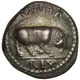 | Obverse description | Bull butting right on exergual line. Inscription above (inverted) and below exergual line. Pellet border. |