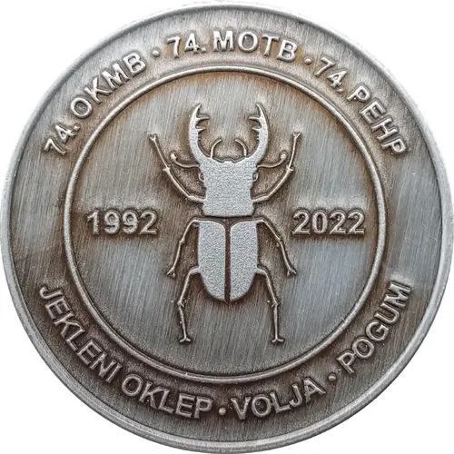 | Ön yüz lejandı | 74. OKMB 74. MOTB 74. PEHP 1992 2022 JEKLENI OKLEP VOLJA POGUM |