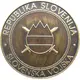| Reverse description | Two crossed swords behind depiction of Slovenian flag in circle with circle having three peaks above, which symbolize Triglav - highest mountain in Slovenia. |