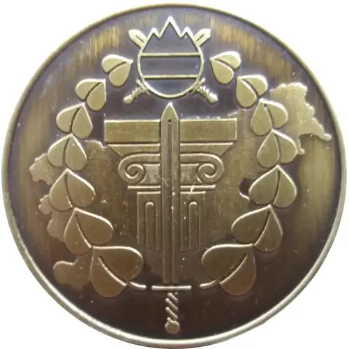 | Obverse description | `Knežji kamen`, a symbol of Slovenian foundations, with map of Slovenia behind it and vertically positioned sword over it, linden leaf laurel on left and right with Slovenian military coat of arms above all. No lettering. |