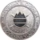 | Reverse description | Two crossed swords behind depiction of Slovenian flag in circle (colored) with circle having three peaks above, which symbolize Triglav - highest mountain in Slovenia. |