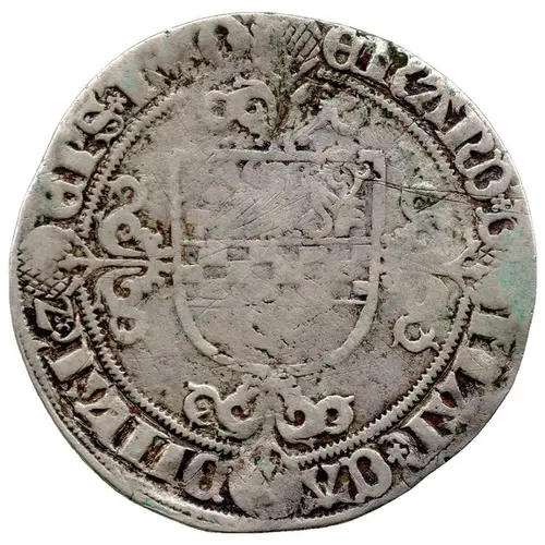 | Obverse description | Arms of la Marck over a long floriate cross dividing legend. |