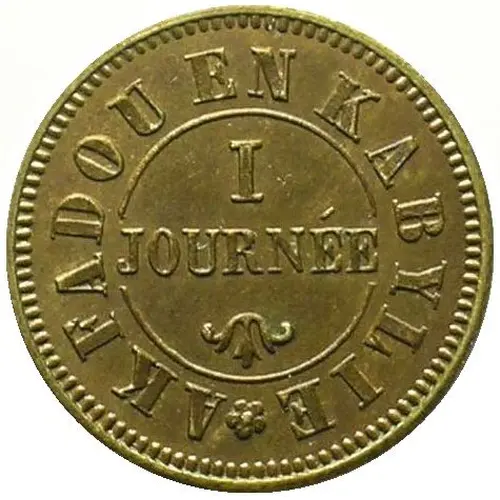 | Obverse lettering | AKFADOU EN KABYLIE I JOURNEE |