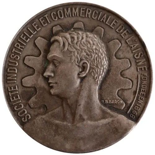 | Obverse lettering | SOCIETE INDUSTRIELLE ET COMMERCIALE DE L`AISNE FONDEE EN 1868 R B BARON |