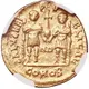 Anthemius and Leo I standing facing in military attire, spear in outer hand, jointly holding globe between them; MD in center field, mintmark in exergue. |