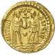 Reverse description Two emperors standing facing, each holding a spear with outer hand, both supporting between them with inner hands a globe surmounted by a cross; in field below globe, a star. Mintmark in exergue.