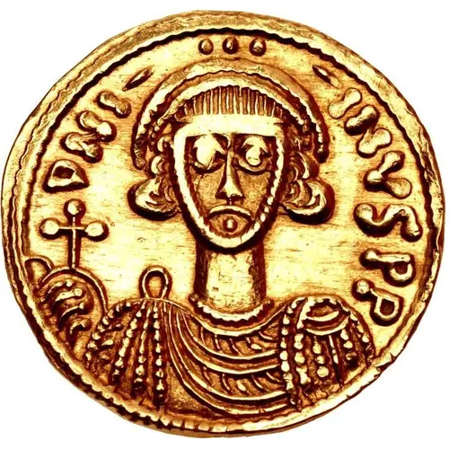 | Obverse lettering | D N I - INVS PP (Translation: Our Lord, Justinian, perpetual (August).) |