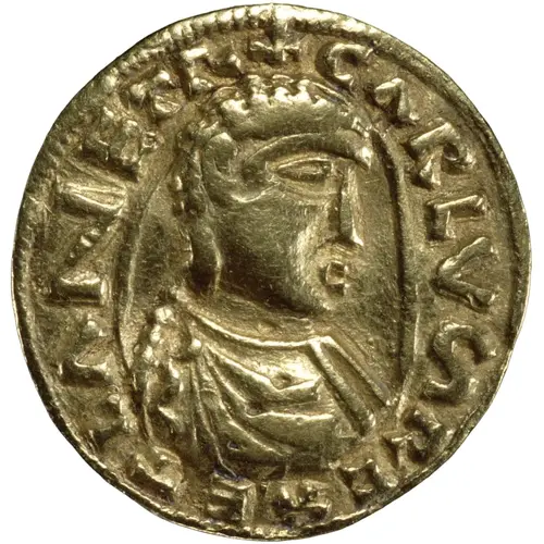 CARLVS REX ET LANETR (Translation: Charles, King of the Franks and the Lombards.) |