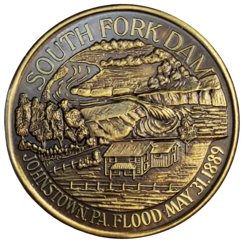 | Obverse lettering | SOUTH FORK DAM JOHNSTOWN PA. FLOOD-MAY 31,1889 |