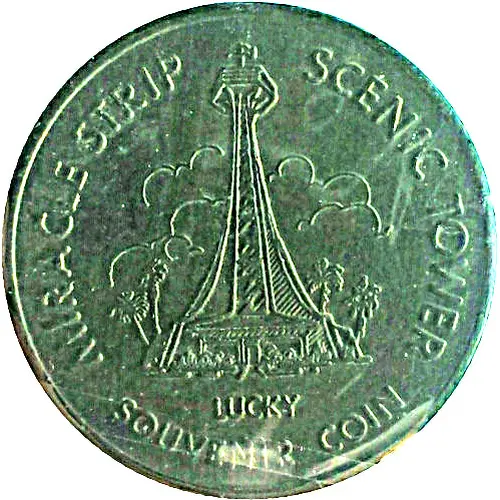 | Obverse lettering | MIRACLE STRIP SCENIC TOWER LUCKY SOUVENIR COIN |