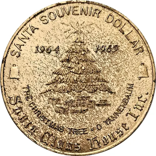 | Obverse lettering | Santa souvenir Dollar 1964 1965 The Christmas tree • O tannenbaum Santa Claus Hoyse Inc |