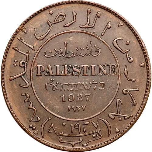 Legenda del rovescio HISTORICAL HOLYLAND COIN מיל • ONE MIL • مل 1 ١ 1927