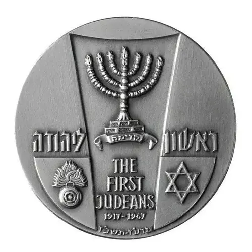 | Obverse lettering | ראשון ליהודה תרע`ז-תשכ`ז The first judeans 1917-1967 |