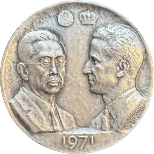 | Obverse description | Busts of Emperor Hirohito and of King Baudouin I, Imperial seal of Japan above with the belgian crown. |