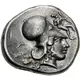 | Mô tả mặt sau | Helmeted head of Athena right; A to left; to right, warrior, nude but for helmet, standing right, holding sword and shield. |
