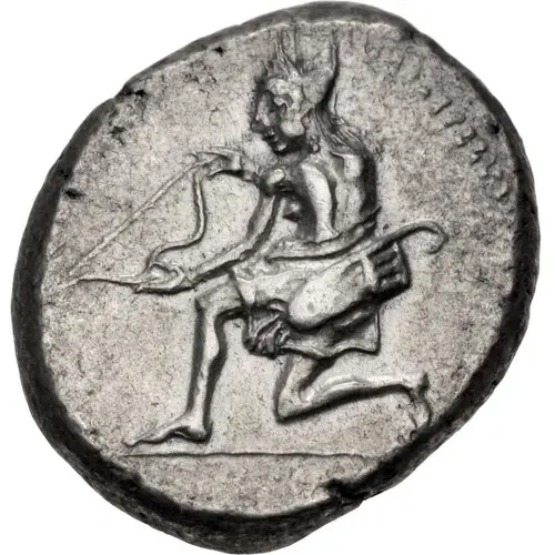 Historical Context: This silver stater was issued by the prosperous city-state of Soloi in Cilicia between 440 BC and 410 BC. This High Classical period coincided with the Peloponnesian War and increasing Persian influence in Asia Minor. Soloi, a key port and trading center, maintained significant autonomy. This coinage underscored the city's economic vitality and independent status, facilitating commerce across the Eastern Mediterranean and reflecting its strategic importance in a contested region.