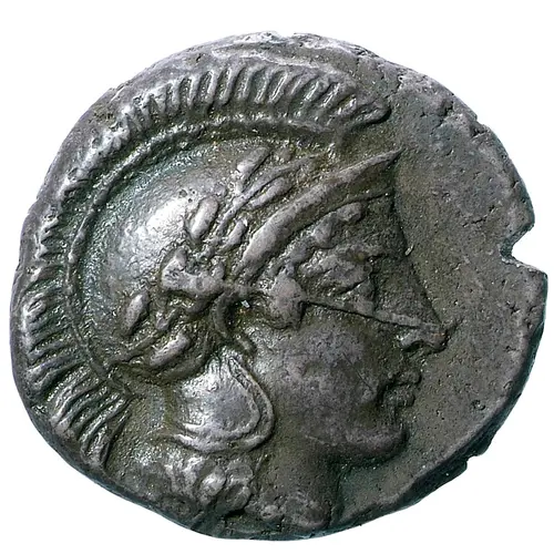 | Obverse description | Head of Athena to right, wearing crested and laureate Attic helmet. |