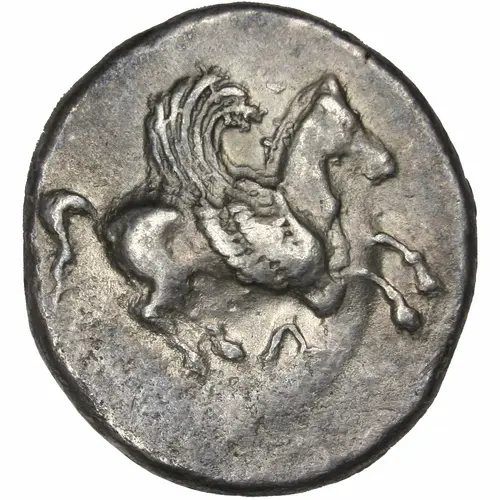 Artistry: The coin's design is characteristic of the Late Classical style, showcasing a move towards greater naturalism and refinement. The obverse typically features Pegasos, the winged horse, flying left, a direct iconographic link to its mother city, Corinth. The reverse, as described by GCV#2277, presents a finely executed head of Aphrodite facing right, her hair elegantly rolled, adorned with a necklace and earring. While the specific engraver remains anonymous, the artistry reflects the high skill of the die-sinkers at the Leukan mint, who captured the goddess's serene expression and intricate details with considerable finesse.