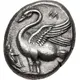 | Reverse description | Swan standing left; to left, grasshopper upward; M-[A-Λ-P] to right; all within shallow incuse circle. |