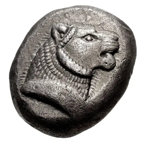 Artistry: The artistry of this stater exemplifies the Archaic Greek style, exhibiting characteristics that prefigure the developing naturalism of the Early Classical period. While the specific engraver remains anonymous, the obverse typically features the powerful forepart of a lion, a prevalent symbol of strength and sovereignty in ancient Anatolian and Greek iconography. This animal is rendered with a stylized, yet robust, musculature and a distinctive mane. The reverse of these early staters commonly displays a simple incuse square, a characteristic feature of early archaic coinage, sometimes containing a geometric pattern or a monogram.