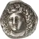 | Obverse description | Head of the nymph Larissa three-quarter facing left, wearing plain necklace and drop pendant earring, her hair held by an ampyx; border of dots. |