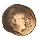 | Beschrijving keerzijde | Human-headed horse galloping right, vestiges of charioteer behind; above, circle of pellets with pellet at center; beneath, outstretched hand. |