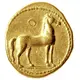 | Reverse description | Horse standing right; double exergual line; three pellets in triangular arrangement at horse`s feet; circle above horse. |