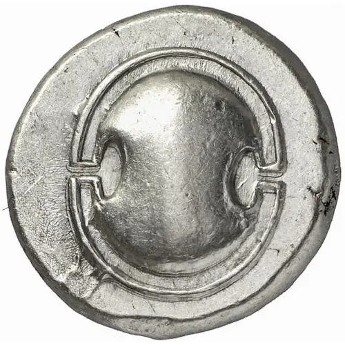 Technical/Grading: Struck in silver to a substantial weight of 12.45 grams and a diameter of 21.5 millimeters, this stater adheres to the Aeginetic standard, underscoring its significant intrinsic value and broad acceptance. Key high-points for wear on the obverse include the central bosses and rim of the Boeotian shield. On the reverse, the handles and rim of the amphora are typically the most susceptible areas. Well-struck examples exhibit sharp details on both devices, often with a broad, relatively flat flan, though minor planchet irregularities are not uncommon for issues of this era.
