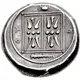 | Reverse description | Double stellate pattern within linear square border; crab above, club below, ΔΥ-P (retrograde) at sides; all in linear circular border within concave circle. |