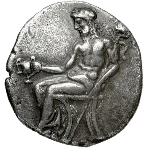 | Obverse description | Dionysus seated left on a throne, holding cantharus and thyrsus. |