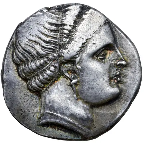 | Descrizione del dritto | Head of Britomartis to right, her hair tightly bound. |