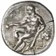 | Reverse description | Herakles seated to left on a rock draped with his lionskin, holding a one-handled cup in his right hand and resting his left on his club and below him a bow |
