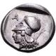 | Reverse description | Head of Athena to left, wearing Corinthian helmet; behind neckguard, kerykeion; all within square incuse. |