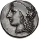 | Описание аверса | Head of Hera left, wearing stephanos decorated with palmettes, ornate earring with upward crescent and three drops, and pearl necklace. |