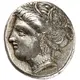 | توضیحات روی سکه | Head of Persephone left, wearing wreath of grain ears, triple-pendant earring, and pearl necklace. |