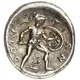 | توضیحات پشت سکه | Ajax advancing to right, nude but for his helmet, holding sword in his right hand and shield ornamented with a coiled serpent on the inside in his left; between his legs, olive branch with berry. |