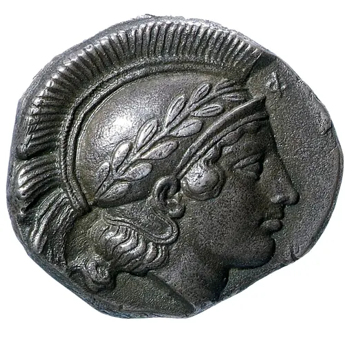 Description de l’avers Head of Athena to right, wearing crested and laureate Attic helmet.