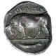 Description du revers Bull walking left, bird between legs and tunny fish below to left.