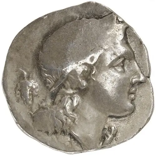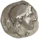 | Beschrijving voorzijde | Head of Dionysos facing right, behind bunch of grapes. |