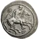 | Obverse description | Nude ephebe riding prancing horse to right, holding reins in his right hand and goad in his left. In field to left, sun and below, ΕΡ |