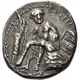| Obverse description | Heracles seated left atop lion`s skin draped over rock, head slightly right, club resting against left leg; before him, tree upon which is hung his bow and quiver; behind, large amphora. |