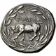 | Reverse description | Bull facing left within laurel wreath. |