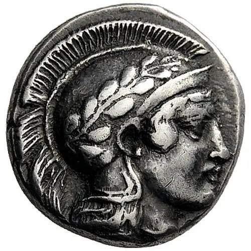 | Obverse description | Head of Athena to right, wearing an Attic helmet ornamented with an olive branch. |