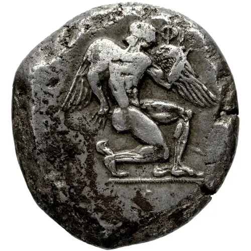 | Obverse description | Persian king or hero in kneeling-running stance to right, holding dagger in right hand and bow in left hand. |